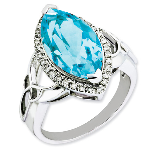 Polished sterling silver ring has a 4.5 carat light Swiss blue topaz marquise gemstone. Diamond ct weight: 0.15.18mm x 9mm marquise center stone. Weight: 4.65 grams. Imported.
