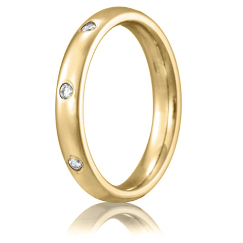 1/6 ct diamond wedding band is made of polished 14kt yellow gold. 8 x .02CT round brilliant diamonds. Diamond color G, clarity SI1. Diamonds are carefully matched and subject to stringent inspection. Precision-set. Ring width: 3mm. Die struck and comfort fit. Made in USA.