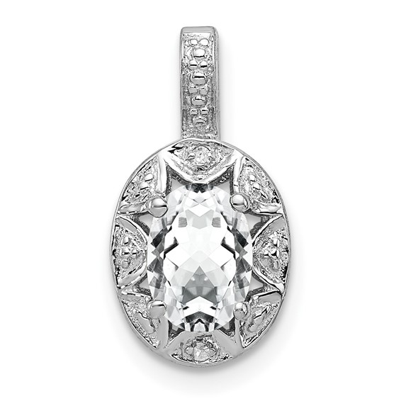Polished sterling silver. White Topaz ct weight: 1. Diamond ct weight: 0.01. 7mm x 5mm oval pendant. Imported.