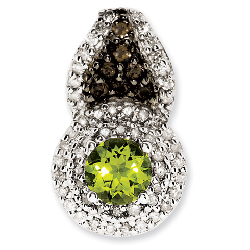 Polished sterling silver. Peridot ct weight: 0.56. Diamond ct weight: 0.27. Weight: 2.25 grams. Imported.