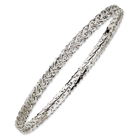 Polished sterling silver bangle. One size fits most. Weight: 11.47 grams. Imported.
