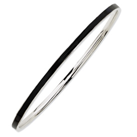 Polished sterling silver bangle has black enamel. One size fits most. Weight: 8.14 grams. Imported.