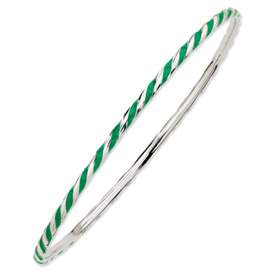 Green enamel twist bangle bracelet is made of polished, rhodium-plated sterling silver. One size fits most. Weight: 6.59 grams. Imported.