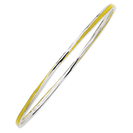 Stackable yellow enamel twist bangle bracelet is made of polished sterling silver. One size fits most. Width: 2.5mm. Weight: 5.69 grams. Import. Available while supplies last.