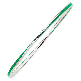 Stackable green enamel twist bangle bracelet in polished sterling silver with rhodium plating. One size fits most. Weight: 5.69 grams. Import.