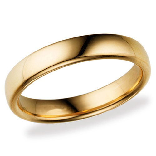 This solid 14k yellow gold 4.5mm wedding band is die struck and comfort fit. Polished finish. Thickness: 2.3mm. Made in USA.