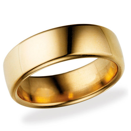 This solid 14k yellow gold 7.5mm wedding band is die struck and comfort fit. Polished finish. Thickness: 2.3mm. Made in USA.
