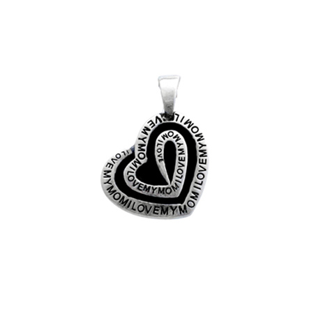 This heart shaped I LOVE MY MOM pendant is made of antiqued sterling silver. This item is part of the Ones We Love jewelry collection.