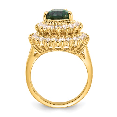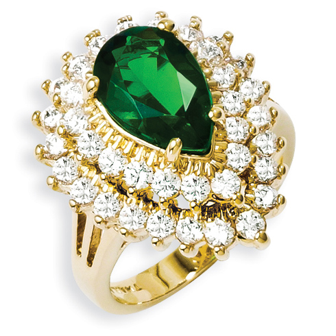 Jacqueline Kennedy cocktail ring has a emerald-colored Swarovski crystal surrounded by 41 CZs. 24k gold plating. The emerald cocktail ring was likely acquired by Jackie between 1965 and 1966. This ring is available in size 7 only while supplies last. Imported. Part of the Jackie Kennedy collection.Each piece of Camrose & Kross jewelry is guaranteed for life against defects in workmanship. This includes plating chipping or wearing, stones falling out or defective hardware or findings. Watches fall under the same warranty, except for their movements, which are guaranteed for one year.Each piece of jewelry is gift boxed in a velour covered steel case and comes with a Camrose & Kross certificate of authenticity. Also included is a romance card with some fascinating information about Jackie and her life.