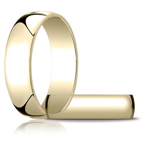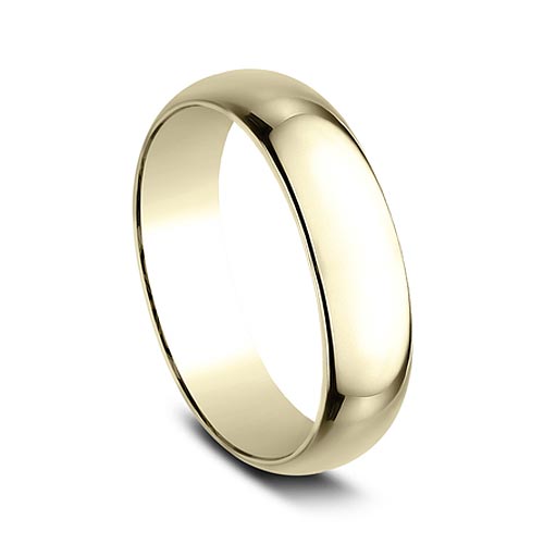 This 14k yellow gold 6mm wedding band is die struck and standard fit. Low domed center, polished finish. Thickness: .8mm. Made in USA.Lifetime GuaranteeIf your ring is ever damaged during normal wear, the manufacturer will repair or replace your wedding ring free of charge. If your finger size ever changes, the manufacturer will resize or replace your ring free of charge. In the case that the manufacturer has to add material to your ring, you will only be charged for the difference in the additional metal or stones needed to restore the piece. Guarantee ParametersThe guarantee does not cover rings that have been ordered in the wrong finger size or finger sizes that may have changed between the time of purchase and the actual physical receipt of the piece. Third party alterations, other than engraving, will void the warranty.The manufacturer reserves the right to deny the Lifetime Guarantee for any ring that shows signs of abuse or tampering.