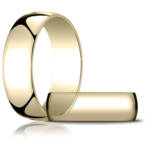 This 14kt yellow gold 7mm wedding band is die struck and standard fit. Low domed center, polished finish. Thickness: .8mm. Made in USA.Lifetime GuaranteeIf your ring is ever damaged during normal wear, the manufacturer will repair or replace your wedding ring free of charge. If your finger size ever changes, the manufacturer will resize or replace your ring free of charge. In the case that the manufacturer has to add material to your ring, you will only be charged for the difference in the additional metal or stones needed to restore the piece. Guarantee ParametersThe guarantee does not cover rings that have been ordered in the wrong finger size or finger sizes that may have changed between the time of purchase and the actual physical receipt of the piece. Third party alterations, other than engraving, will void the warranty.The manufacturer reserves the right to deny the Lifetime Guarantee for any ring that shows signs of abuse or tampering.