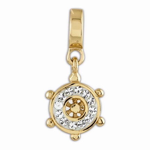 Gold-plated ship's wheel bead is made of sterling silver. Imported. Hole in dangle is 4mm. This dangle is compatible with all major personalized bead bracelet systems. Import.