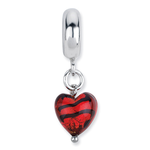 Red heart with stripes dangle bead is made of Murano glass and polished sterling silver. Imported. Hole in dangle is 4mm. This dangle is compatible with all major personalized bead bracelet systems.