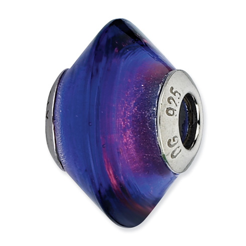 This tapered dark blue and pink Murano glass bead is made of antiqued sterling silver. Bead size: 14.5mm x 11.8mm. This Reflections bead fits all major modular bracelet brands. Made in Italy.
