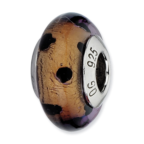 Brown with black dots Murano glass bead is made of antiqued, solid sterling silver. Bead dimensions: approximately 13.25mm diameter, bead hole: 4.00mm diameter. Imported.