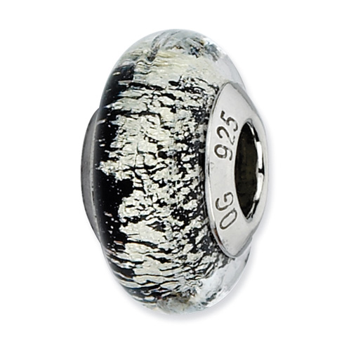 Black and silver Italian Murano glass bead is made of antiqued, solid sterling silver. Bead dimensions: approximately 13.25mm diameter, bead hole: 4.00mm diameter. Imported.