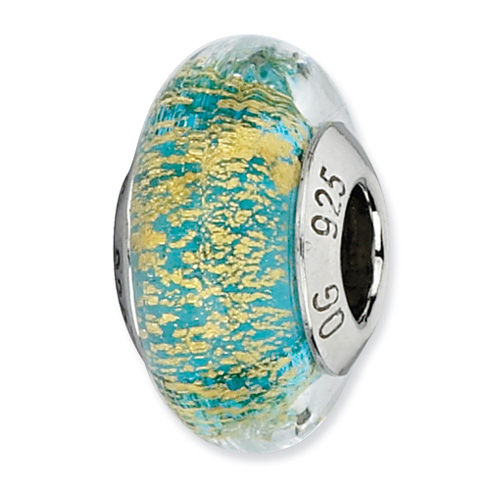 This teal and gold Murano glass bead is made of antiqued sterling silver. Bead size: 13.6mm x 7.2mm. This Reflections bead fits all major modular bracelet brands. Made in Italy.