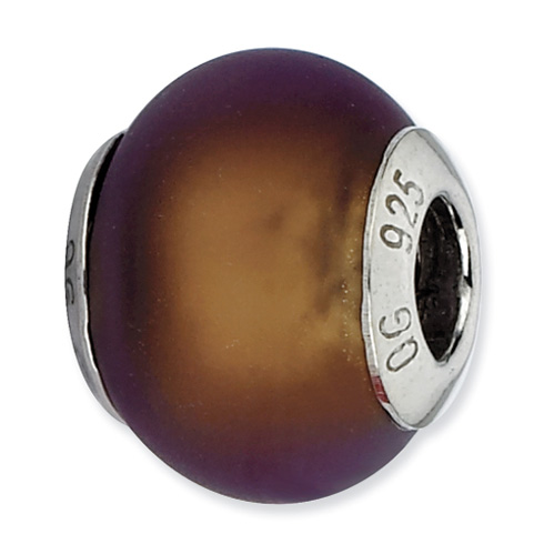 This round brown matte Murano glass bead is made of antiqued sterling silver. Bead size: 12.7mm x 10mm. This Reflections bead fits all major modular bracelet brands. Made in Italy.