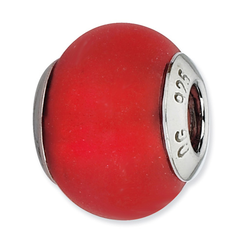 This round red matte Murano glass bead is made of antiqued sterling silver. Bead size: 12.7mm x 10mm. This Reflections bead fits all major modular bracelet brands. Made in Italy.