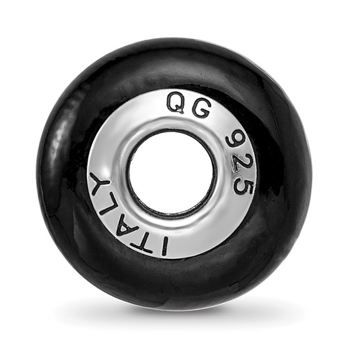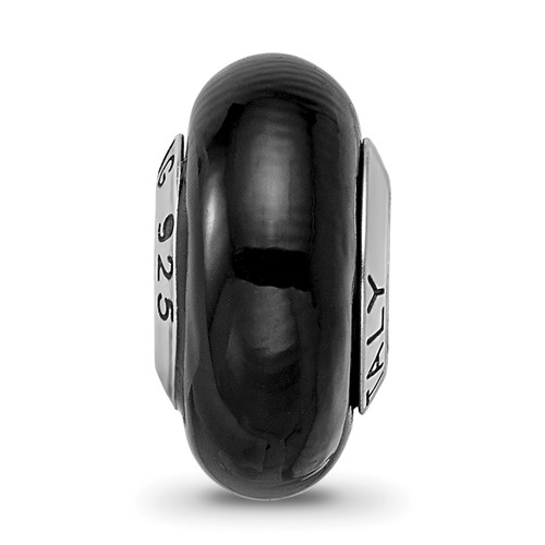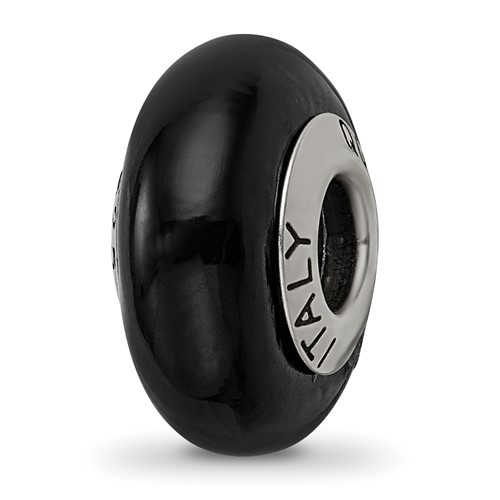 This black Murano glass bead is made of antiqued sterling silver. Bead size: 12.7mm x 7.2mm. This Reflections bead fits all major modular bracelet brands. Made in Italy.