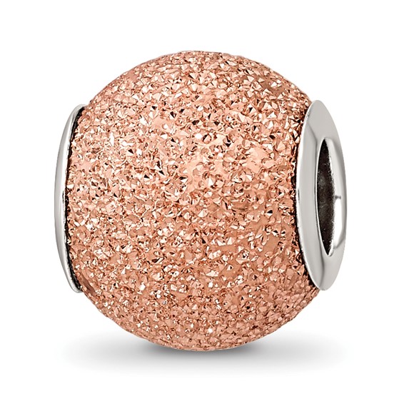 Rose gold-plated laser cut bead is made of antiqued, solid sterling silver. This bead fits all major modular bracelet brands. Imported.