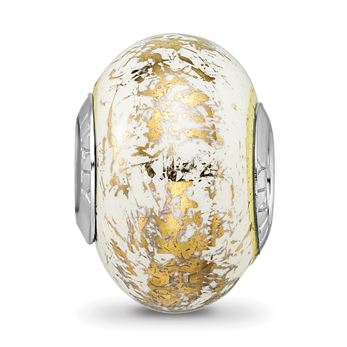 White ceramic bead with gold foil is made of antiqued sterling silver. This Reflections bead fits all major modular bracelet brands. Imported.