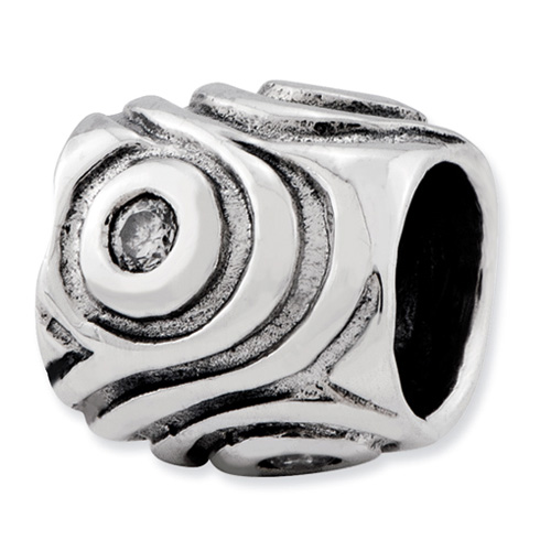 Wavy four stone cubic zirconia bead is made of antiqued, solid sterling silver. This bead fits all major modular bracelet brands. Imported.