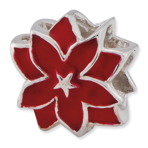 Flower bead has red enamel and is made of sterling silver. This Reflections bead fits all major modular bracelet brands. Imported.