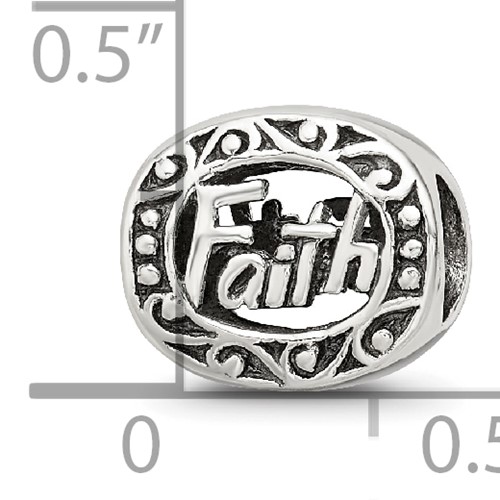 Oval faith bead is made of antiqued, solid sterling silver. This bead fits all major modular bracelet brands. Imported.