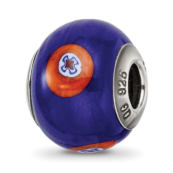 This blue with decorative accents glass bead is made of antiqued, solid sterling silver. This bead fits all major modular bracelet brands. Imported.