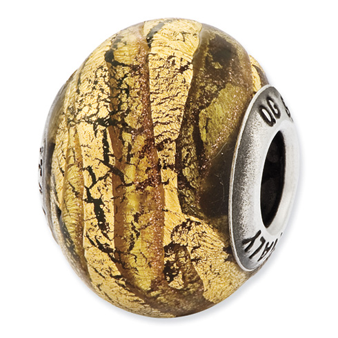 This light bronze and gold glass bead is made of antiqued, solid sterling silver. This bead fits all major modular bracelet brands. Imported.
