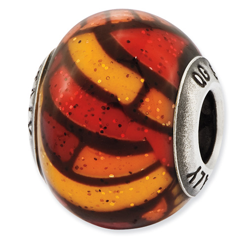 Orange decorative overlay glas bead is made of antiqued, solid sterling silver. This bead fits all major modular bracelet brands. Imported.
