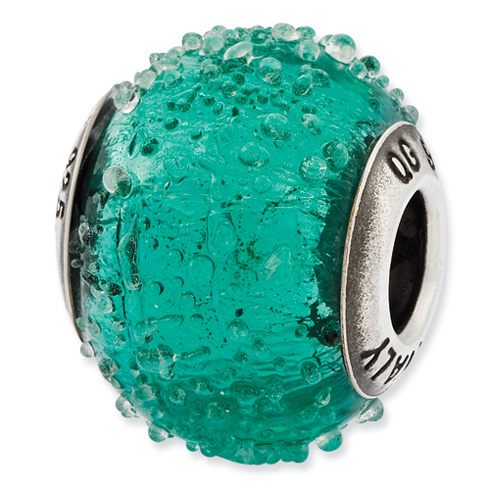 This textured teal Murano glass bead is made of antiqued sterling silver. Item size: 13.6mm x 10.9mm. This Reflections bead fits all major modular bracelet brands. Import.