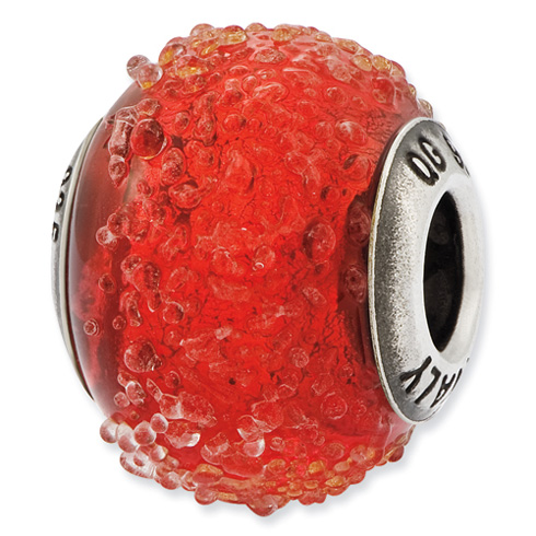 Red textured bead is made of Murango glass and antiqued sterling silver. This Reflections bead fits all major modular bracelet brands. Import.