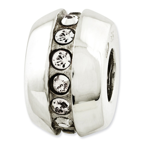 This bead has a channel of clear Swarovski crystals and is made of antiqued sterling silver. This Reflections bead fits all major modular bracelet brands. Import.