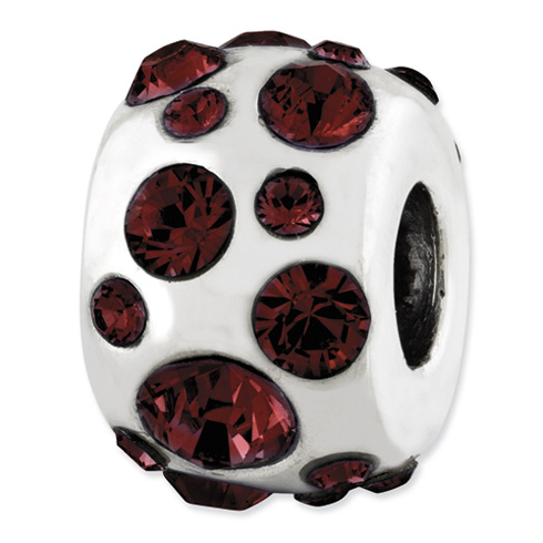 This bead has garnet Swarovski crystals all the way around and is made of antiqued sterling silver. This Reflections bead fits all major modular bracelet brands. Imported.