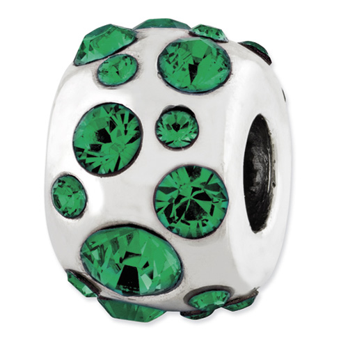 This bead has emerald Swarovski crystals all the way around and is made of antiqued sterling silver. This Reflections bead fits all major modular bracelet brands. Imported.