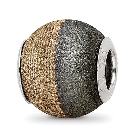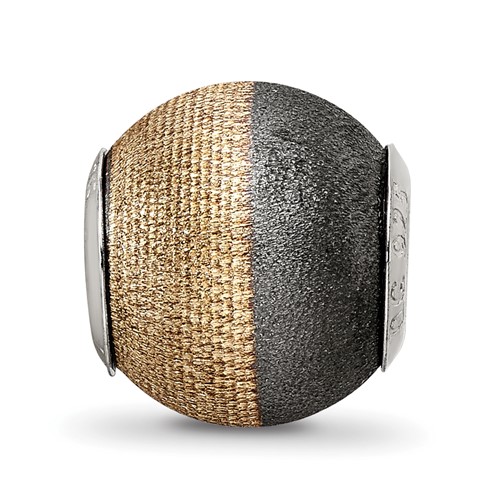 This gold-plated black matte bead is made of antiqued, solid sterling silver. This bead fits all major modular bracelet brands. Imported.