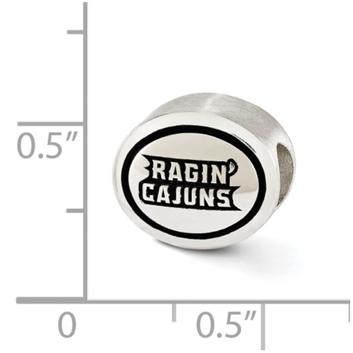 University of Louisiana at Lafayette bead is made of antiqued, solid sterling silver. Two-sided design, bead hole diameter is 4mm. Made in the USA. Officially licensed product. This bead is compatible with all major personalized bead bracelet systems.