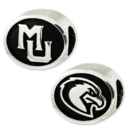 Sterling silver Marquette University bead is made of antiqued, solid sterling silver. Two-sided design, bead hole diameter is 4mm. Made in the USA. Officially licensed product of Marquette University. This bead is compatible with all major personalized bead bracelet systems.