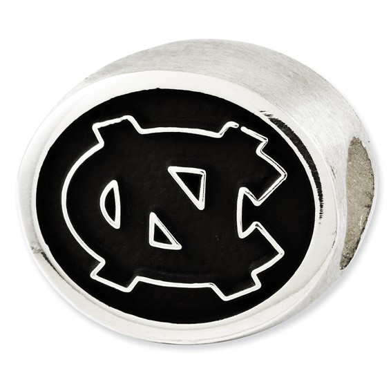 University of North Carolina oval bead is made of antiqued, solid sterling silver. Two-sided design, bead hole diameter is 4mm. Made in the USA. Officially licensed product of University of North Carolina. This bead is compatible with all major personalized bead bracelet systems.
