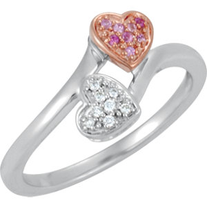 Ssterling silver sweetheart ring is adorned with genuine pink sapphires and white diamonds. Stone details: 8 x .005ct round diamonds and 8 X .0006ct pink sapphires. Available in finger sizes 6, 7, and 8 only. Approximate weight: 2.2 grams.