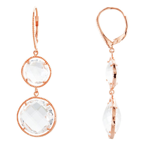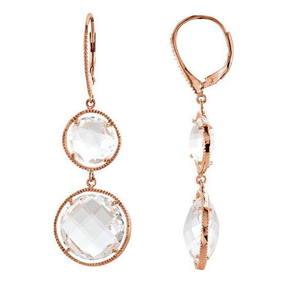 Rose gold plated earrings feature 10mm and 14mm genuine checkerboard clear quartz gemstones. Leverback earrings are made of polished, solid sterling silver with rose gold plating. Earrings approximate weight: 5.9 grams.