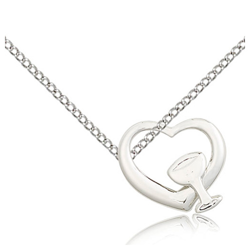 Heart and chalice communion medal is made of sterling silver. Die struck and hand engraved. Free 18-inch sterling silver lite curb chain with lobster clasp. Dimensions: 5/8in x 1/2in. This item is slightly smaller than a penny and is a great communion gift. Made in USA.