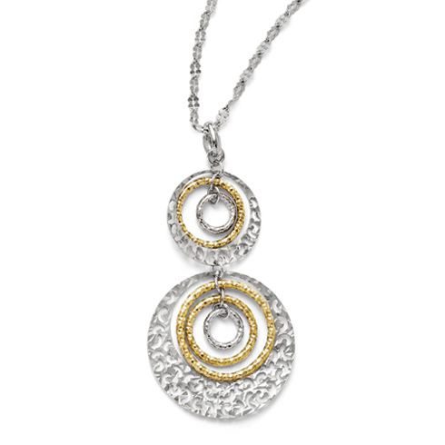 This textured circles necklace is made of polished, yellow gold-plated sterling silver. Made in Italy. Approximate item weight: 5.2 grams.