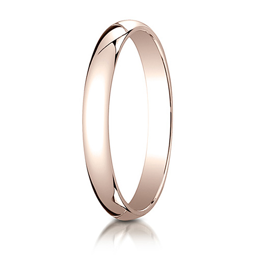 Solid 14k rose gold wedding band is die struck and standard fit. Width: 3mm, thickness: 1.3mm. Oval center, polished finish. Made in USA.Lifetime GuaranteeIf your ring is ever damaged during normal wear, the manufacturer will repair or replace your wedding ring free of charge. If your finger size ever changes, the manufacturer will resize or replace your ring free of charge. In the case that the manufacturer has to add material to your ring, you will only be charged for the difference in the additional metal or stones needed to restore the piece. Guarantee ParametersThe guarantee does not cover rings that have been ordered in the wrong finger size or finger sizes that may have changed between the time of purchase and the actual physical receipt of the piece. Third party alterations, other than engraving, will void the warranty.The manufacturer reserves the right to deny the Lifetime Guarantee for any ring that shows signs of abuse or tampering.