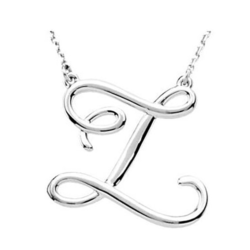 Capital letter Z script charm dangles from a 16in diamond cut cable chain. Charm dimensions: 5/8in x 1/2in. Chain width: 1mm. Lobster clasp. Weight: 3.0 grams.