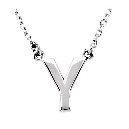 Block letter Y charm dangles from a 16in diamond cut cable chain. Charm height: 1/2in. Chain width: 1mm. Lobster clasp. Weight: 3.0 grams.