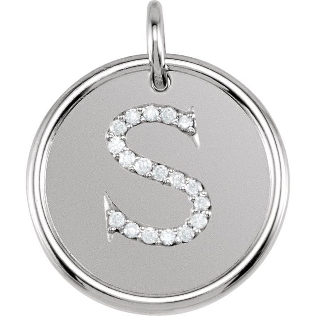Round sterling silver initial S charm has genuine diamond accents. Charm dimensions: 17.25mm. The charm is set with 1mm, full cut G-H color I1 clarity genuine round diamonds. Weight: 2.6 grams.