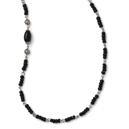 Buy a silver-tone Downton Abbey black acrylic bead 36in Necklace. Weight: 20.91 grams. Fancy lobster clasp. Officially licensed Downton Abbey merchandise. Includes Downton Abbey themed gift box. Nickel-free. Made in USA.